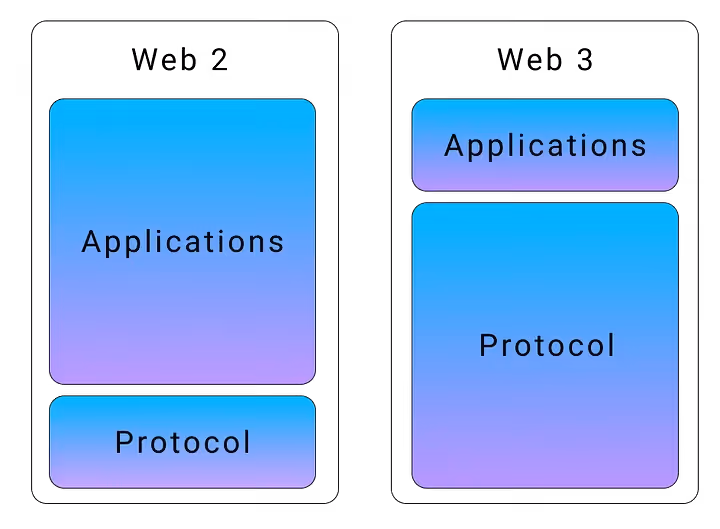 The thesis is fairly simple: blockchain protocols generate exponential value for end users as more applications (DApps) are built on top of them. Think how yield optimizers built on top of Dexes help users get more out of the same basis product. Everything is open source and interconnected, creating a virtuous growth cycle. This stands in stark contrast to Web2, where value is concentrated in monolithic applications.